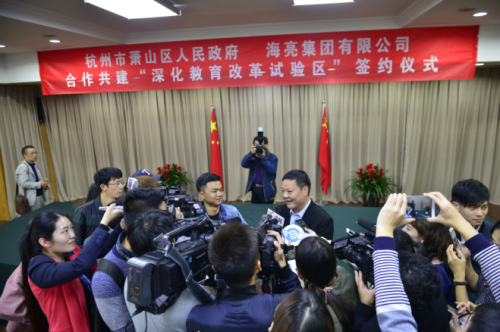 乘著民辦教育發展的東風,海亮集團積極順應中國教育改革發展新時代,開啟占領教育制高點,走向全國走向世界的新征程新突破,勇敢試水,主動對接蕭山,合作新建湘湖公學,為建設中國未來教育示范性的標桿和樣本,同時希望通過托管湘湖聞堰板塊的學校,把蕭山建設成區域性教育改革試驗區,使之成為教育生態型社區的引領者,為蕭山區率先建成省現代化教育強區助力。